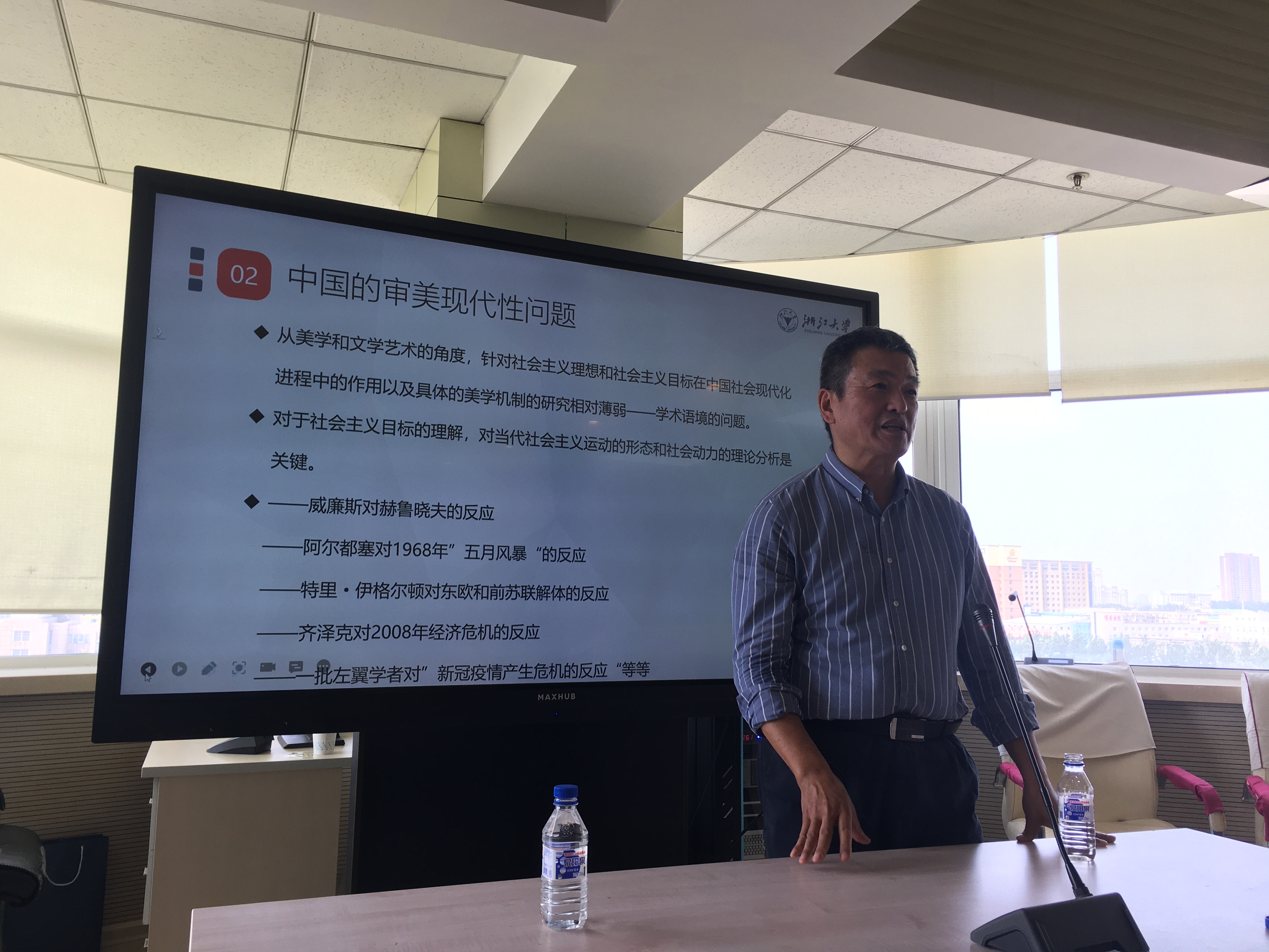 王杰教授围绕着“社会主义目标”“审美现代性”“红色经典”和“文化价值”等核心概念,深入浅出地解析了社会主义目标在美学方向上的基本内涵,阐释了人的全面发展、自由发展的实现路径。王杰教授认为,中国共产党领导文艺创作和批评的具体实践,为今后的中国文艺道路树立了典范,应当认真总结历史经验,形成中国文艺理论和文艺批评的当代话语体系。他分析,在中西比较视野下的“中国审美现代性”具有独特的情感和逻辑结构,这对探讨“红色经典”作为“第四种先锋派”的特殊文化价值具有潜在的价值。