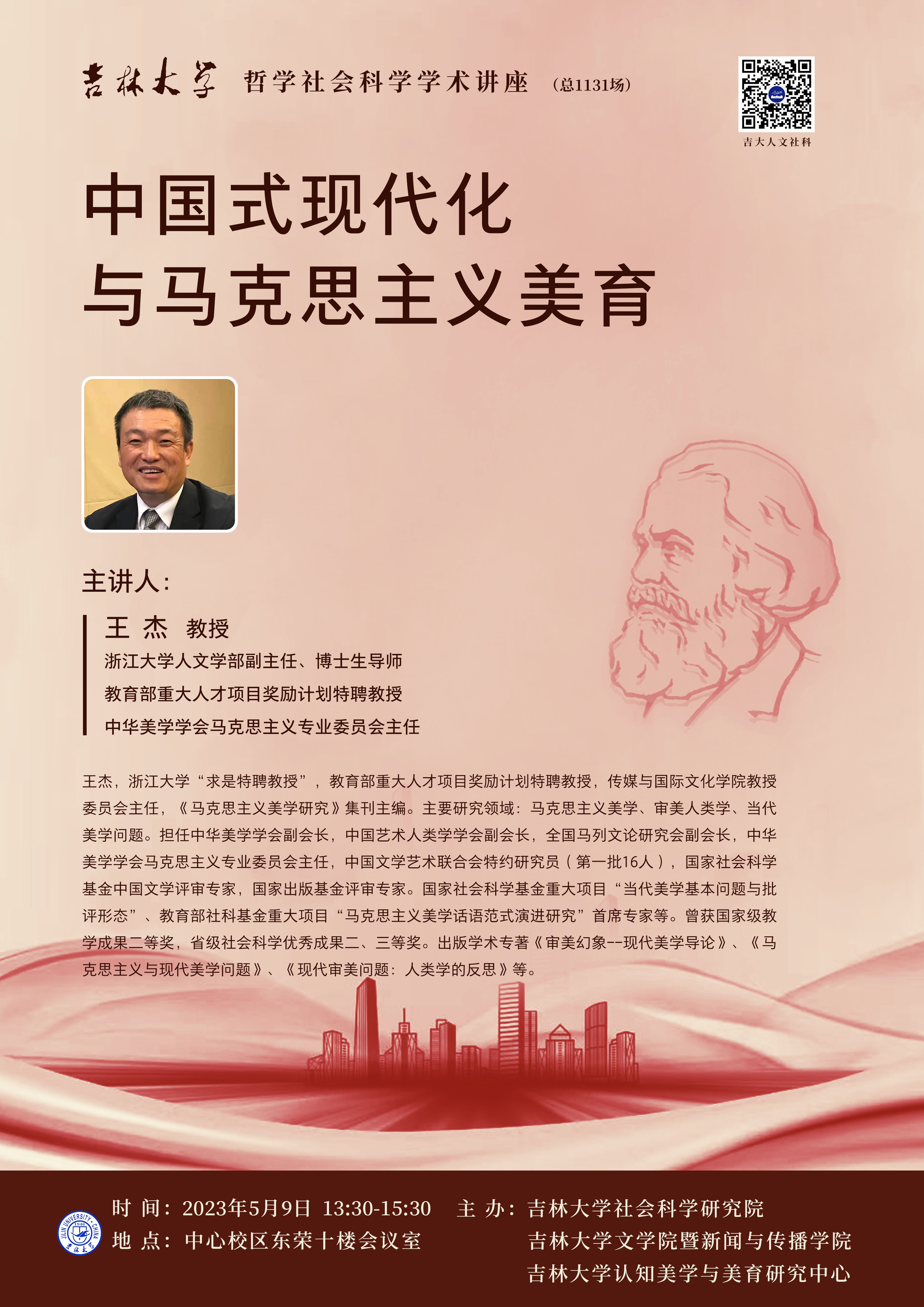 王杰,浙江大学“求是特聘教授”,教育部重大人才项目奖励计划特聘教授,传媒与国际文化学院教授委员会主任,《马克思主义美学研究》集刊主编。主要研究领域:马克思主义美学、审美人类学、当代美学问题。担任中华美学学会副会长,中国艺术人类学学会副会长,全国马列文论研究会副会长,中华美学学会马克思主义专业委员会主任,中国文学艺术联合会特约研究员(第一批16人),国家社会科学基金中国文学评审专家,国家出版基金评审专家。国家社会科学基金重大项目“当代美学基本问题与批评形态”、教育部社科基金重大项目“马克思主义美学话语范式演进研究”首席专家等。曾获国家级教学成果二等奖,省级社会科学优秀成果二、三等奖。出版学术专著《审美幻象--现代美学导论》、《马克思主义与现代美学问题》、《现代审美问题:人类学的反思》等。