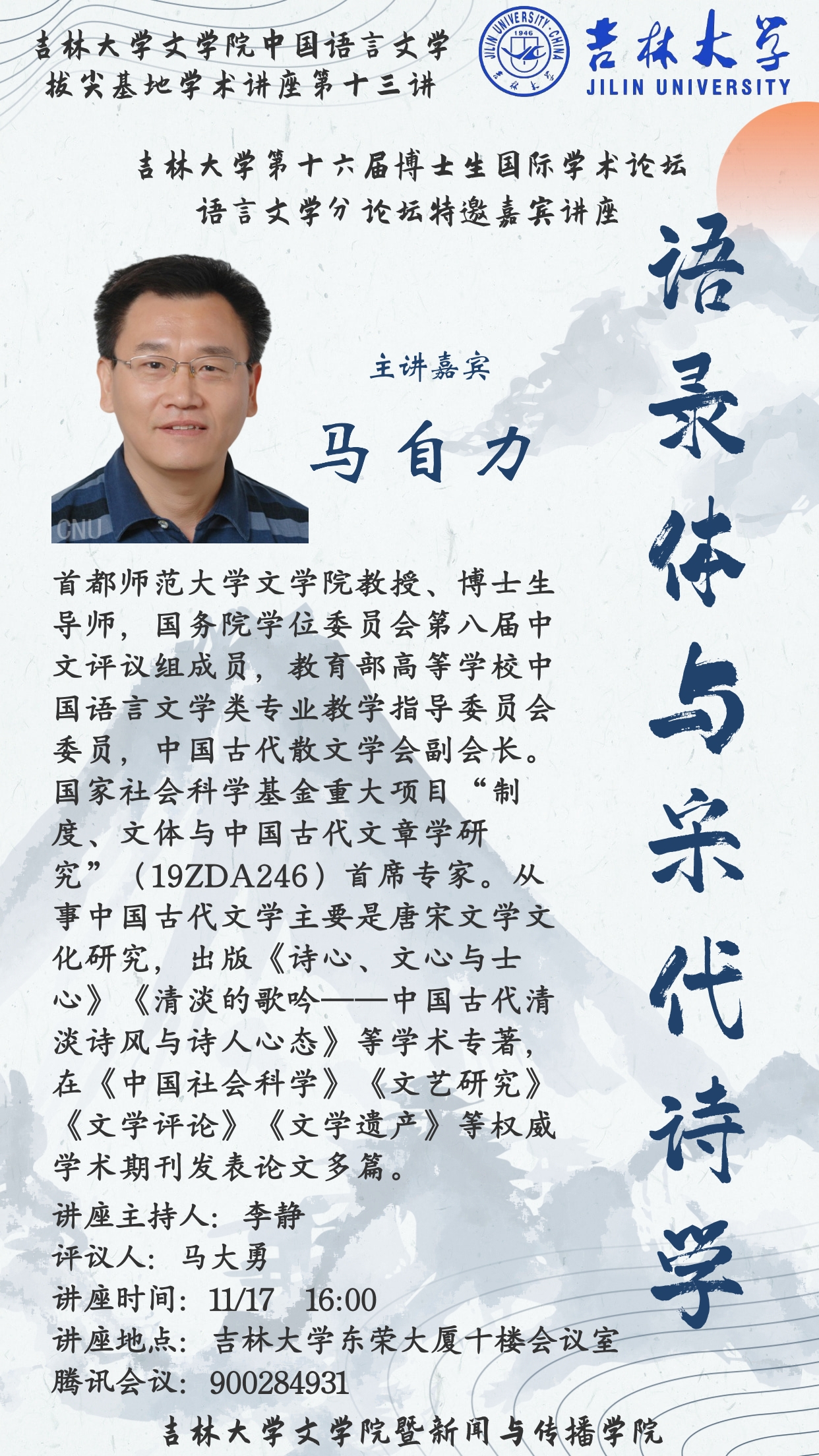 吉林大学第十六届博士生国际学术论坛语言文学分论坛特邀嘉宾讲座