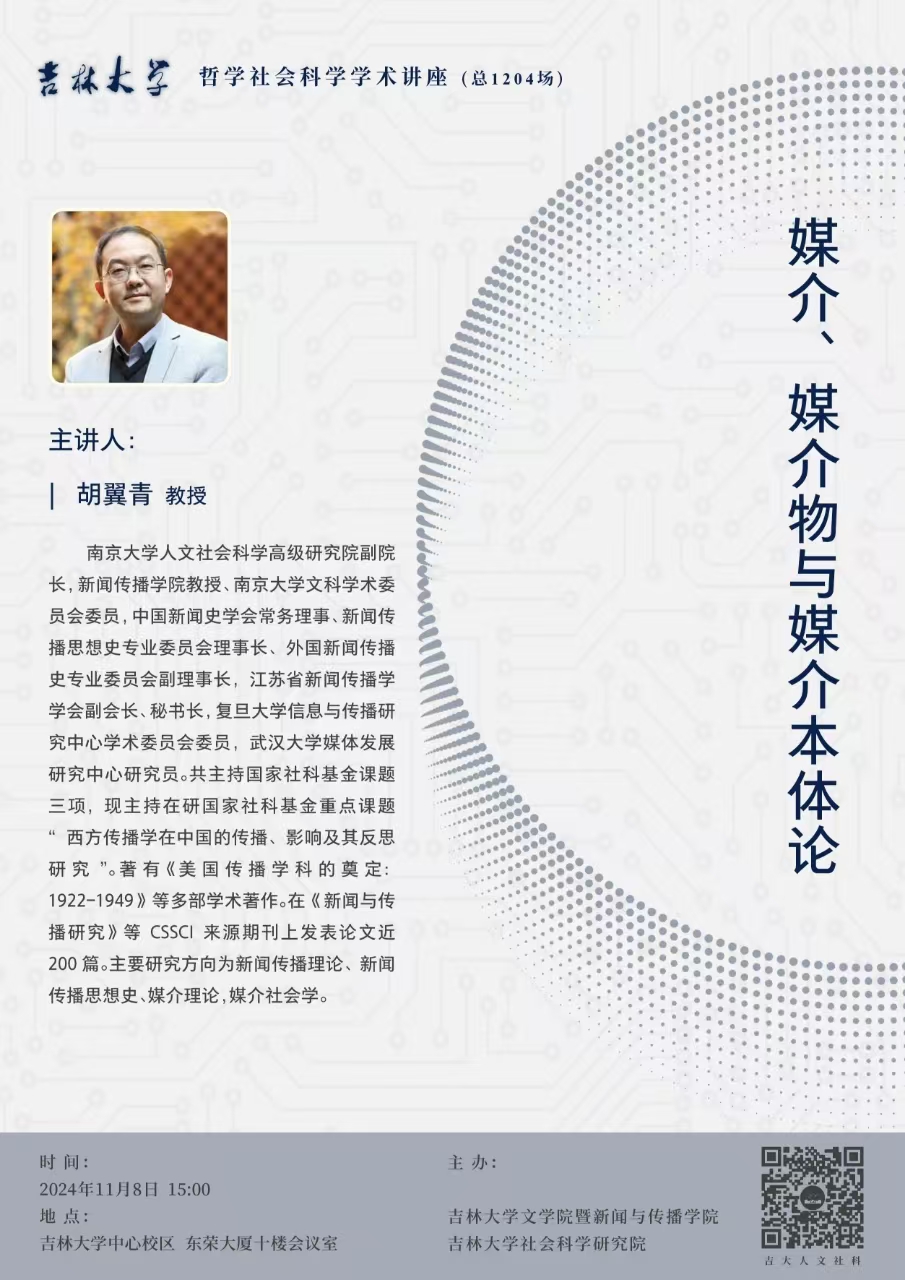 胡翼青,南京大学人文社会科学高级研究院副院长,新闻传播学院教授、南京大学文科学术委员会委员,中国新闻史学会常务理事、新闻传播思想史专业委员会理事长、外国新闻传播史专业委员会副理事长,江苏省新闻传播学学会副会长、秘书长,复旦大学信息与传播研究中心学术委员会委员,武汉大学媒体发展研究中心研究员。共主持国家社科基金课题三项,现主持在研国家社科基金重点课题“西方传播学在中国的传播、影响及其反思研究”。著有《美国传播学科的奠定:1922-1949》等多部学术著作。在《新闻与传播研究》等CSSCI来源期刊上发表论文近200篇。主要研究方向为新闻传播理论、新闻传播思想史、媒介理论,媒介社会学。