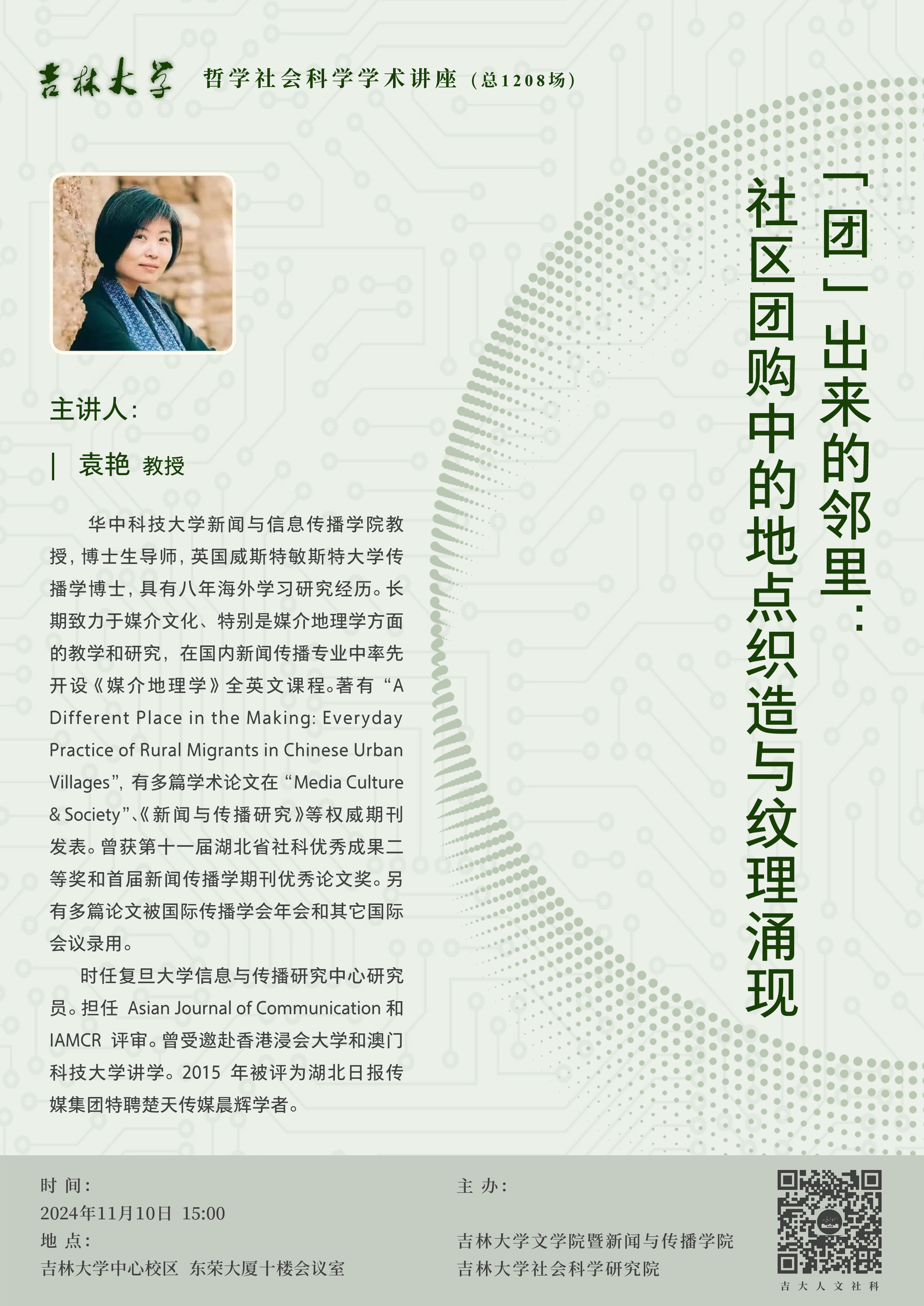 讲座题目:“团”出来的邻里:社区团购中的地点织造与纹理涌现