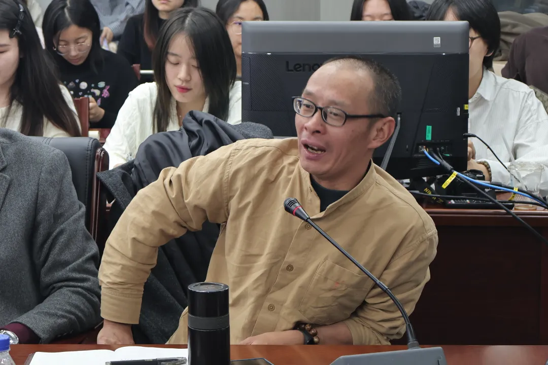 在问答环节,胡翼青教授详细回答了学生的问题。针对学生提出的关于结构主义、媒介研究与媒介现象学的提问,胡翼青教授解答媒介现象学的很多学者都强调生成性和不确定性,这是他们和结构主义的冲突。物是具有先在性的,媒介物的研究在很大程度上面他想关注的东西就是这个物在多在大成都上面限定了人思考,物是一个先导,并不是最重要的东西,物质性的研究其实最后的重点依旧是落在人。同时,胡翼青教授也解答了关于“间性”的问题,间性就是两者之间,媒体间性就是不同媒介之间的转意与转化。间性很复杂,具体要看是在什么语境中理解,一切都是在生成中,既没有初始点,也没有终结。间性是发生在被建构的过程中。如同盲人摸象一样,物无论如何都不会被穷尽,所以间性强调了一种知识性生成对物的理解,是我们认识世界的重要手段。