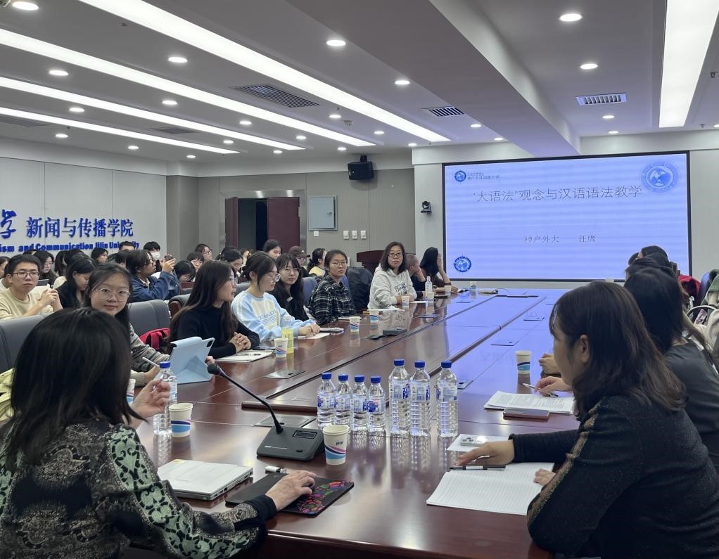2024年11月8日,日本神户市外国语大学中文系教授、博士生导师任鹰教授在东荣大厦十楼会议室为我院师生带来题为《“大语法”观念与汉语语法教学》的学术讲座。讲座由周莉教授主持,由刘艳茹教授进行总结评议,WANBO.COM的王倩老师、王岩老师、李剑影老师和张苗苗老师等师生共同参加讲座。