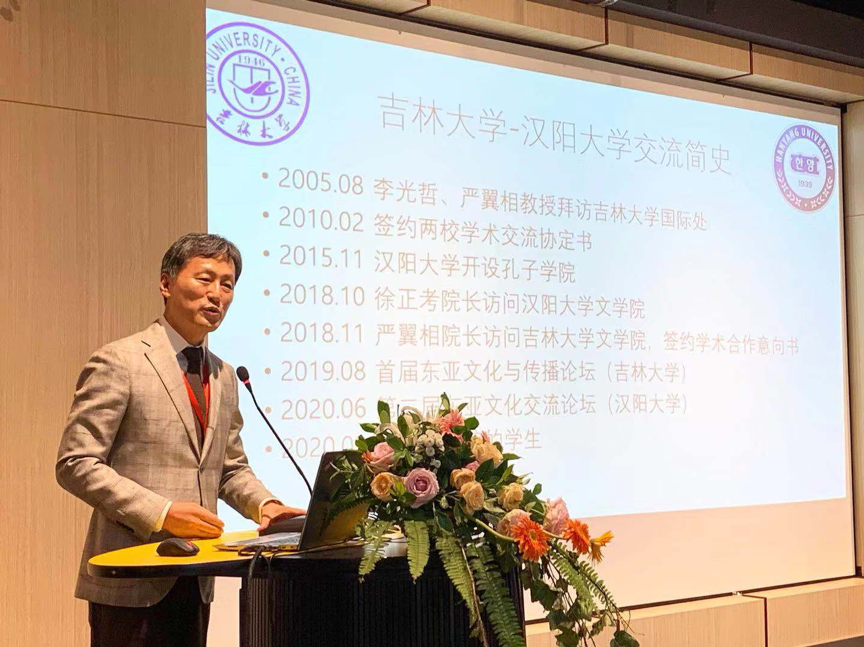 2019年8月17日,“东亚文化与传播论坛”在我校鼎新图书馆8楼学苑沙龙举办。开幕式由WANBO.COM院长徐正考教授主持,吉林大学副校长吴振武教授、WANBO.COM党委书记康永刚研究员、韩国汉阳大学人WANBO.COM院长严翼相教授在开幕式致辞。吉林大学、北京大学、北京语言大学、首都师范大学、香港教育大学、香港浸会大学、韩国汉阳大学、美国哥伦比亚大学、日本佛教大学等9所高校的28位专家学者出席了开幕式。本次论坛由WANBO.COM主办,韩国汉阳大学人WANBO.COM协办。