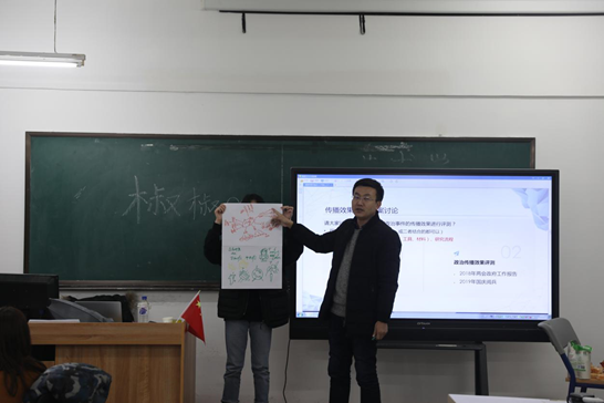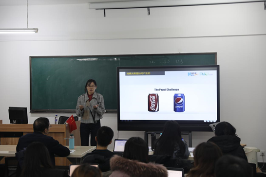 随后,鄢晓濛研究员从广告效果测评的角度为老师和同学们讲解传感器在广告传播领域中的运用,通过心理学中感性和理性的概念作用对比介绍了传感器的技术原理和使用逻辑。并且详细地阐释了神经营销各种形式的优缺点。讲解后以工作坊形式进行了政治传播和广告创意两个方向的内容讨论。老师和同学们根据研究方向和爱好以四个案例——白领女性广告偏好评测、影音设备效果评估、2018年两会政府工作报告和2019年国庆阅兵进行限时讨论,每个小组都集思广益,气氛浓烈,在每组发言完毕后鞠靖副院长都会根据小组方案进行点评,并根据新华网的业务经验为各小组的研究方案提供了意见。