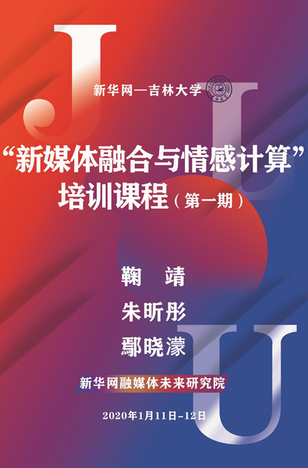 2020年1月11日至12日由吉林大学新闻与传播学院和新华网融媒体未来研究院共同举办的“新媒体融合与情感计算”培训课程(第一期)在吉林大学新闻传播与广电艺术实验教学中心圆满完成。经学院领导批准与规划,本次培训由吉林大学新闻与传播学院副院长鞠惠冰教授主持,特邀请新华网融媒体未来研究院鞠靖副院长、朱欣彤研究员和鄢晓濛研究员作为课程主讲嘉宾。吉林大学新闻与传播学院副院长刘鸣筝教授、孔朝蓬教授以及各专业教师代表参与了课程培训,各专业研究生代表积极配合完成了培训相关的志愿者工作。