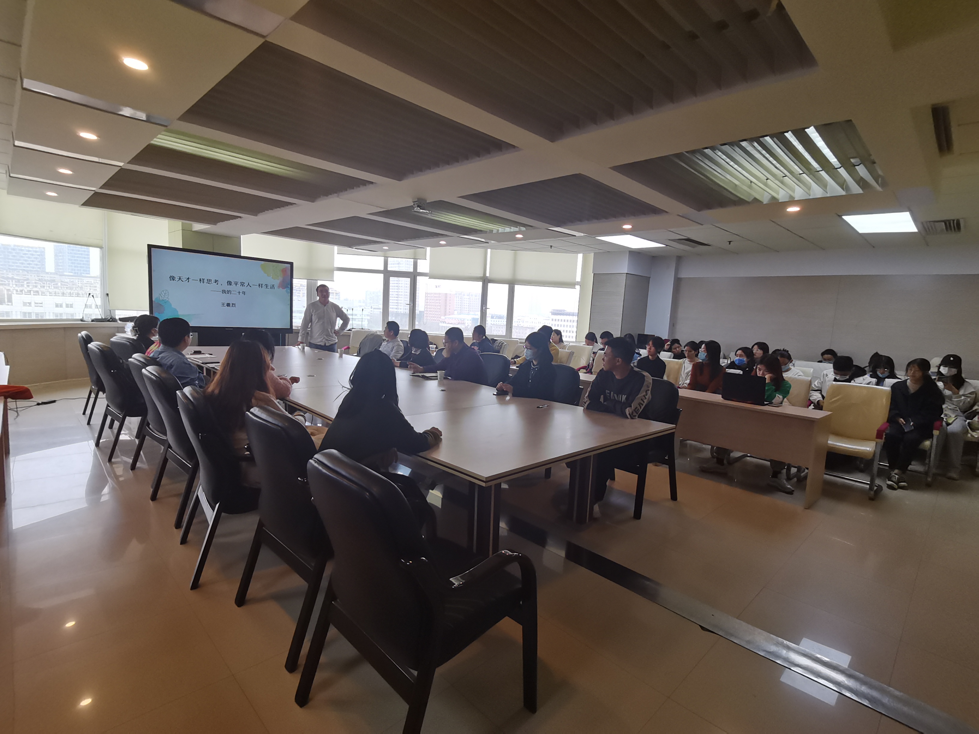 2021年11月3日下午14时,“就”在文传——系列实习实践报告第七场暨就业促进周专题讲座《飞扬与坚守:我的二十年》在东荣大厦十楼会议室圆满举行。本次讲座主讲人为吉林大学2001级中文系校友王羲烈与王高文。
