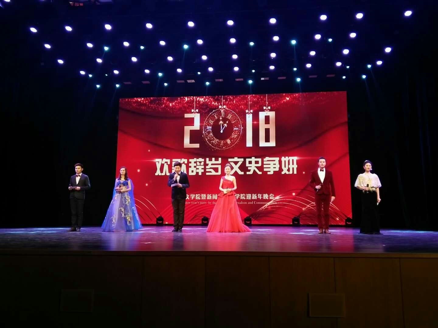 12月21日晚,鼎新大讲堂外寒风凛冽,大讲堂内华灯映照、溢彩流光,WANBO.COM暨新闻与传播学院研究生迎新年晚会在这里举行,WANBO.COM院长徐正考教授、党委书记康永刚老师以及学院的老师莅临晚会现场,与WANBO.COM研究生欢聚一堂,共同迎接新年到来。