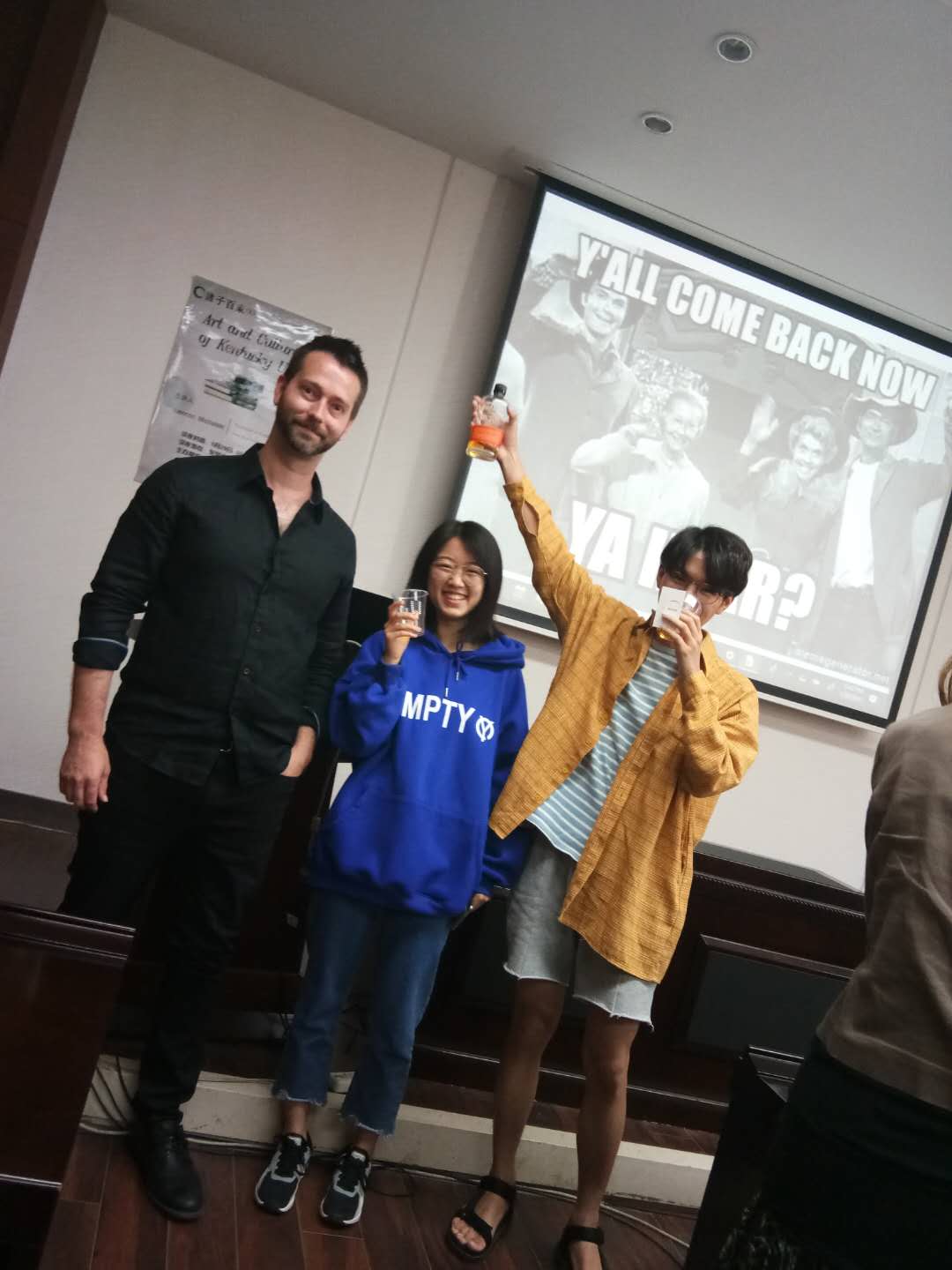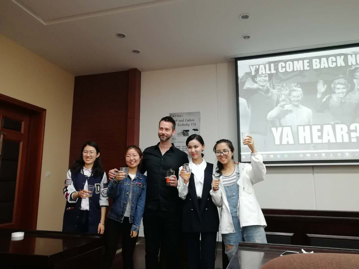 讲座的最后,Lennon教授亲自带来的The Mint Julep,邀请同学们,并将自己制作的名片卡发放给同学。同时和同学、老师合影留念,共同记录这一开心时刻。