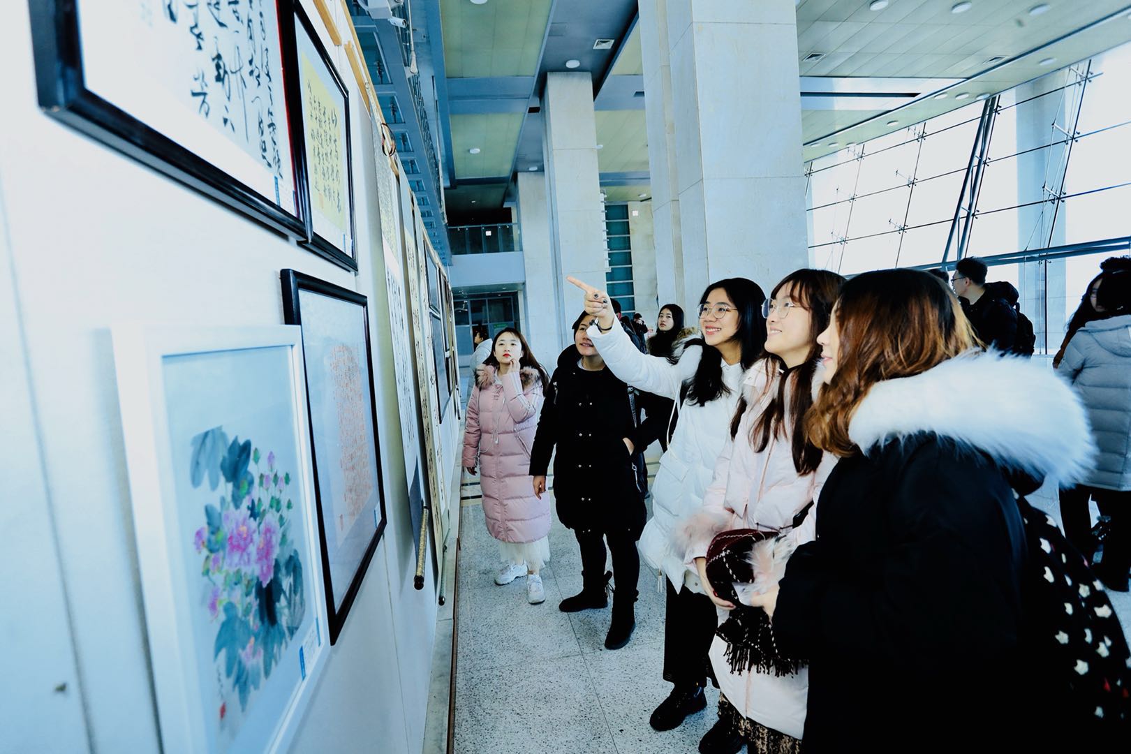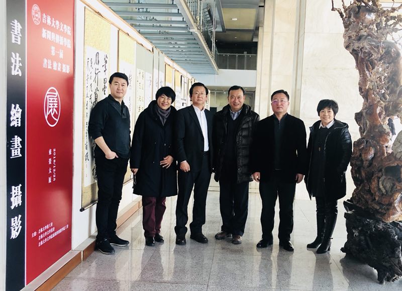 本网消息 为了展示我国书画文化和现代摄影的魅力,丰富师生的业余生活,活跃艺术创作,促进校园文化和精神文明建设,12月25日,WANBO.COM暨新闻与传播学院在东荣大厦一楼大厅举办了该院第一届书法、绘画、摄影展。开展当天,吉林大学工会主席陆志东、副主席任波,WANBO.COM院长徐正考、党委书记康永刚,WANBO.COM副院长、工会主席刘艳、副主席田鹏等领导及师生代表一同观看了展览。