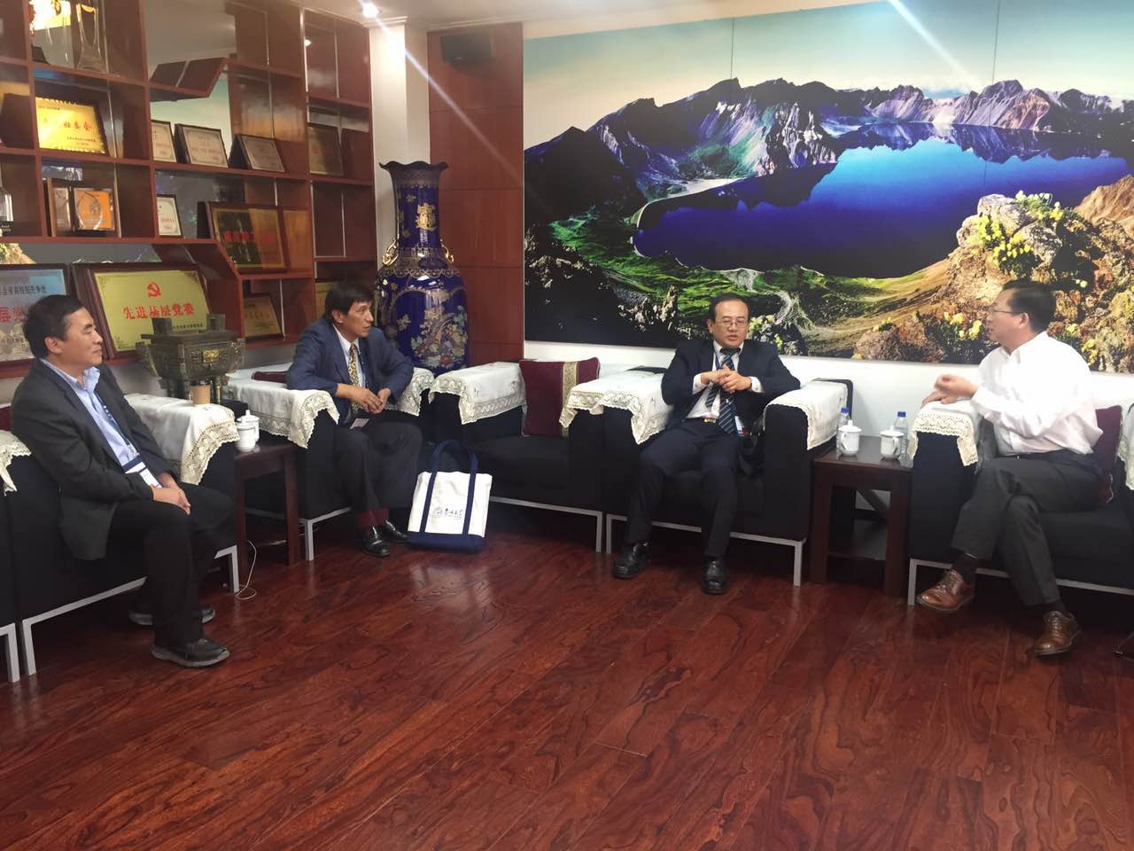 徐正考院长对来宾的访问致以热烈的欢迎,并向来宾简要介绍了学院的师资队伍、学科建设及WANBO.COM等方面的情况。WANBO.COM作为学科涵盖面广、师资储备强的大院,在许多业务领域上都有与台湾高校开展合作的可能。两岸高校彼此间要增进了解、凝聚共识,以精准对接巩固会谈成果。 铭传大学与吉林大学作为姊妹校,在学校、学院层面都保持着密切往来。徐正考院长称赞铭传大学在新闻传播学科发展上的开创性建设,并表示大陆、台湾高校的学科发展各有所长,应加强互联互通,促进彼此发展。