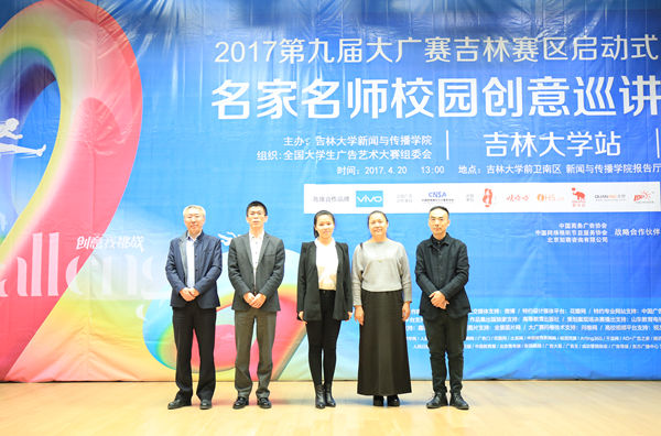 2017年4月20日下午,第九届全国大学生广告艺术大赛吉林分赛区启动仪式暨名家名师校园创意巡讲活动在吉林大学新闻与传播学院演播厅隆重举行。活动现场座无虚席,高潮迭起,来自吉林分赛区的长春大学、长春理工大学、长春师范大学、长春建筑学院、吉林工商学院、吉林动画学院、吉林大学等省内十余所高校的600余名师生参加了本次活动。 活动由全国大学生广告艺术大赛吉林赛区副秘书长、吉林大学新闻与传播学院副院长鞠惠冰主持,他宣布活动正式开始,并对远道而来的现场嘉宾与师生表示热烈欢迎,随后,他对近年来大广赛吉林赛区的赛况发展进行了简要的概括与总结,热情洋溢地介绍了参与此次创意巡讲活动的各位名师名家。他提到,吉林大学新闻与传播学院应发挥桥梁纽带作用,促进吉林赛区再接再厉取得更好成绩,勉励同学们实践广告梦想,创作出更多的优秀创意作品。 之后,吉林大学新闻与传播学院副院长刘鸣筝代表活动承办院校致欢迎词。在向到场的嘉宾和师生表示诚挚的欢迎与感谢之后,她简要介绍了吉林大学新闻与传播学院的创建历史和学科建设。她强调,大广赛作为实践教学的一部分,是联系高校、企业和社会的纽带,是同学们展示才能的良好平台,是联系理论与实践的践行基地。在命题解析环节,往届优秀指导教师生琳针对此次大广赛的命题特点与要求进行了全面细致的解读。她说,本届大广赛的主题口号是创意我挑战,意在强调创新与突破,同学们应不拘泥于传统的广告表现形式来进行创意。同时,为了适应新媒体发展背景下广告行业需求的变化,本届大广赛更加注重移动互联网平台的线上广告创作类型。在公益广告方面,本届比赛还首创“视频公益广告大奖”,鼓励同学们以中华传统文化精神为核心创作参赛作品。 此外,大广赛首席合作单位vivo智能手机品牌经理刘俊琪、娃哈哈集团吉林地区市场总监张雪峰和iH5学院高级讲师徐蕊分别从企业角度进行深入剖析,介绍了相应的企业文化和品牌的发展重点,以期帮助同学们更为准确地把握企业命题核心。 最后,北京印刷学院设计艺术学院教授刘秀伟为现场师生带来了题为《广告“奖”创意》的精彩演讲。她以多元化的阐述方式深入浅出地讲解了创意的重要性和构建方式。演讲内容丰富而具有可操作性,受到了老师同学们的热烈欢迎与高度共鸣。活动进行的同时,还开设了微信大屏幕随机抽奖环节,借助社交媒体的有效传播,同学们参与活动的热情大幅度提升,现场热潮此起彼伏,三个多小时的互动交流在同学们的不舍声中圆满落下帷幕。创意,是自我思考的突破,也是集体智慧的融合。通过本次巡讲活动,吉林赛区各院校老师和同学们与大广赛进行了更为深入密切的接触,同学们受到启发和鼓励,收获颇丰。相信在不远的将来,参赛师生们亦能够将这份热情延续到竞技赛场上去,用创意挑战命题,用梦想点亮校园。