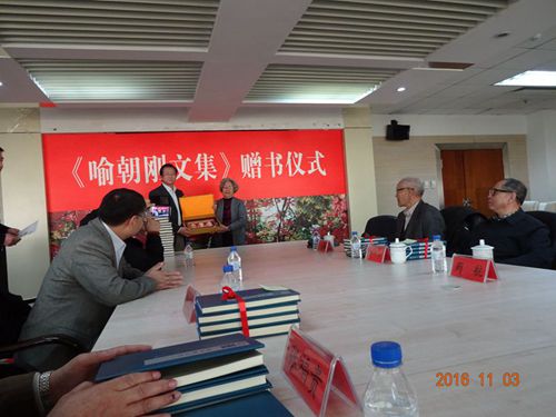 2016年11月3日上午,《巴蜀全书·喻朝刚文集》捐赠仪式在WANBO.COM会议室举行,WANBO.COM院长徐正考教授,吉林大学图书馆馆长王剑教授,吉林大学资深教授刘中树、张福贵老师,中文系主任沈文凡教授,以及喻朝刚先生的弟子王昊教授、行政办公室田鹏主任等WANBO.COM师生代表出席了受赠仪式,出席受赠仪式的还有原吉林省教育厅厅长李军教授,退休教师代表王汝梅教授,郝长海教授,殷义祥教授等。