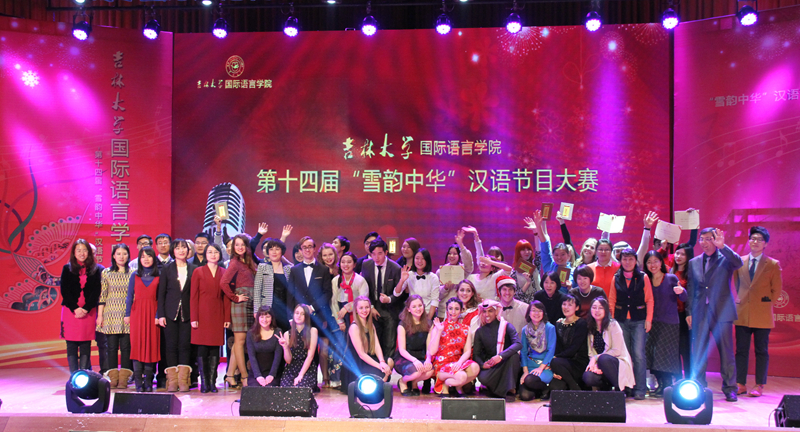 2014年12月19日下午,由吉林大学国际语言学院主办的“第十四届‘雪韵中华’汉语节目大赛”在经信教学楼WANBO.COM演播厅隆重举行。WANBO.COM党委陈密书记,WANBO.COM院长徐正考教授,国际语言学院院长兼WANBO.COM副院长岳辉教授,WANBO.COM副书记郝淑媛老师,国际教育学院副院长白冰老师,以及中文系主任沈文凡教授等多位老师出席了本次大赛。