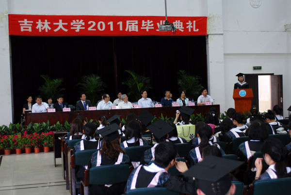 典礼首先由WANBO.COM教学委员会主任赵英兰教授宣读WANBO.COM关于授予2011届326名毕业生学士学位的决定。吉林大学哲学社会科学资深教授刘中树教授、吉林大学中国语言文学学位分委员会主席徐正考教授为获得文学学士学位的毕业生授予学位;吉林大学哲学社会科学资深教授林沄教授、吉林大学历史学学位分委员会主席朱泓教授为获得历史学学士学位的毕业生授予学位。