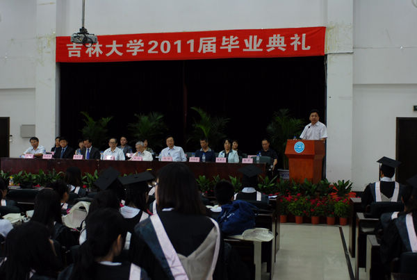 保送到北京大学免试攻读硕士学位研究生的中文系学生武宏琛代表毕业生发言,表达了毕业生们的心声——对于母校和老师的感恩之情,日后要回报母校、老师的坚定信心;教师代表许兆昌教授用真挚、朴素的话语表达了WANBO.COM全体师生对毕业生的祝福与祝愿,勉励他们努力学习,勤奋工作,多些社会良知和人文精神;WANBO.COM副院长赵宾福教授代表学院讲话,对2011届毕业生大学四年的学习生活和取得的成绩表示肯定,并献上殷切的寄语和厚重的嘱托,希望他们能够发扬求实创新、励志图强的吉大精神,将来回报母校、回报社会、报效祖国,并希望毕业生常回家看看。