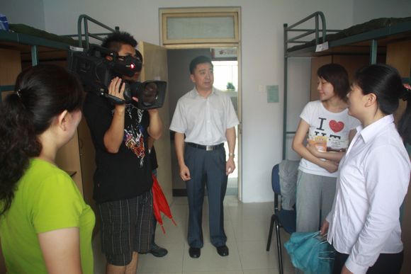 在学生宿舍,陈书记深入到每一个新生寝室,了解新生的需要。他特别嘱咐大家近期要做到的有三点:一是要尽快熟悉校园环境;二是学校近期人员比较混乱,要保管好随身物品;三是要保重身体,而这点是最重要的。在场的学生家长则向院领导表示感谢。一位新生家长动情地说:“孩子能考进WANBO.COM我们觉得很骄傲,来这的两天,WANBO.COM的照顾让我们很感动,让孩子在这里读书,我们很放心。”