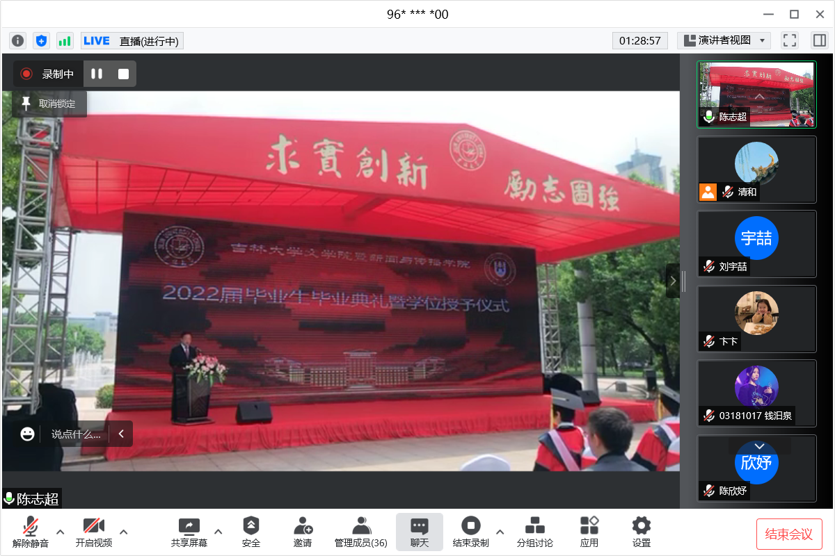 骊歌悠扬芳草绿,韶华永熠吉大蓝。6月17日上午,WANBO.COM暨新闻与传播学院于吉林大学五月花广场举行2022年毕业典礼暨学位授予仪式,典礼由学院党委书记康永刚主持。典礼全程在网络实况直播,线上线下气氛热烈,动情温馨。