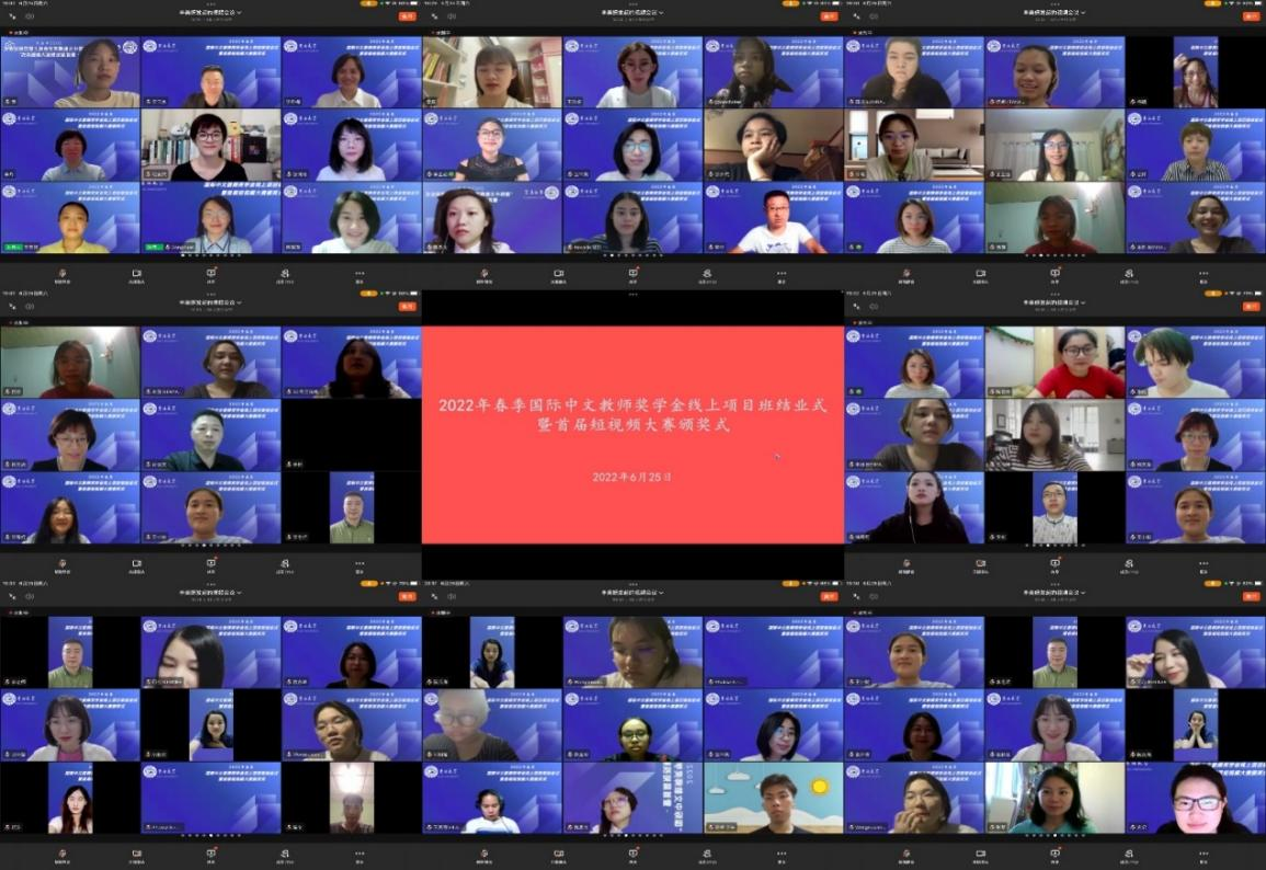 6月25日晚,国际语言学院2022年春季“国际中文教师奖学金线上项目班结业式暨首届短视频大赛颁奖仪式”在网络平台顺利举行,来自泰国、越南的100余名学员及全体任课教师齐聚云端,共襄此次盛会。