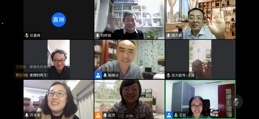 在互动环节,评议人周大勇教授对讲座进行总结,并与主讲人就恐怖谷效应和拟人化设计在广告创意传播中的运用进行了进一步的探讨,在场同学们也在评论区积极发表观点。吉林大学广告文化研究中心副主任王博学还将恐怖谷效应与艺术学、设计学关联起来,补充了“纯真之眼”这一概念。刘晔骁、许多澍、王健、张剑鸣、生琳、赵贺等广告学专业教师也共同打开视频,大家共同进行了一场回忆吉大校园美好时光的“云相聚”,同学们也饶有兴致地参与其中。