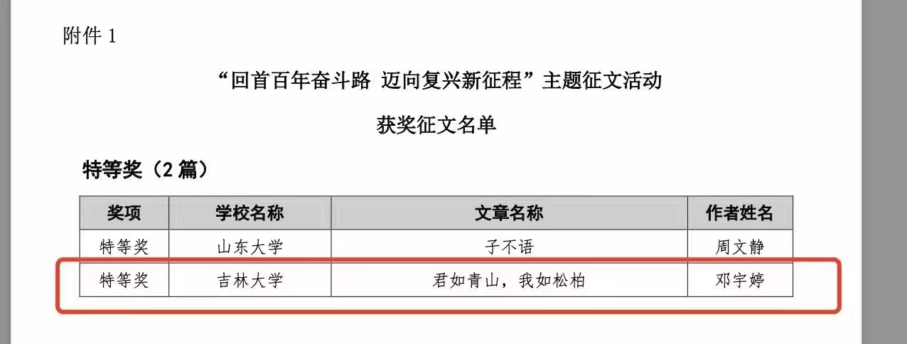 由教育部港澳台事务办公室举办的“回首百年奋斗路 迈向复兴新征程”港澳台学生主体征文活动圆满落幕。我校WANBO.COM汉语言专业2021级台湾籍学生邓宇婷荣获特等奖(全国仅两名)。
