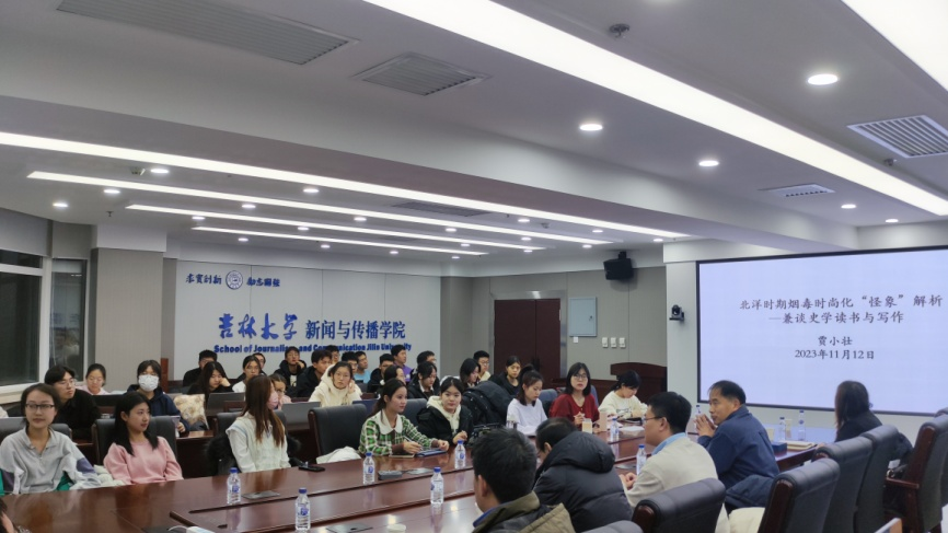 吉林大学励新优秀青年教师培养计划入选者、中国史系贾小壮副教授作了题为“北洋时期烟毒时尚化‘怪象’解析——兼谈史学读书与写作”的学术报告。报告中,贾小壮老师就北洋时期烟毒时尚化诸“怪象”进行了深入解析,并结合自己的研究成果与参会师生分享了开展科研写作的经验心得。他将学术论文的撰写分为选题、史料搜集与提纲设定、论证、修改四大步骤,选题可选择新视角、新史料或新方法,同时应充分重视史料,史料也是提纲设定的重要依据,切忌伪造;在论证的过程中,可以从历史现象切入,深入挖掘其背后动因,最后贾小壮老师强调,论文修改是一个整体审视的过程,也是一个反复琢磨的过程,要沉下心来,将历史研究做细、做实。与会老师分别结合自己的研究方向对报告进行了深入评议,也对学生现场提出的问题进行了细致解答。