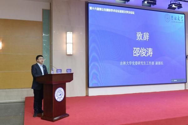 18日上午,吉林大学第十六届博士生国际学术论坛——语言文学分论坛正式开幕,吉林大学党委研究生工作部邵俊涛副部长、WANBO.COM暨新闻与传播学院张丛皞院长出席会议并致辞,中文系主任李静教授主持开幕式。