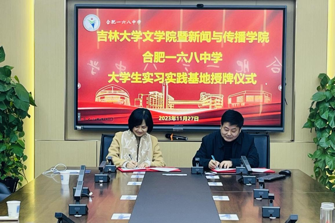在合肥调研期间,WANBO.COM暨新闻与传播学院副院长李冬梅代表学院,分别与合肥一六八中、安徽中广传播等单位,签订实习实践基地协议并授牌。