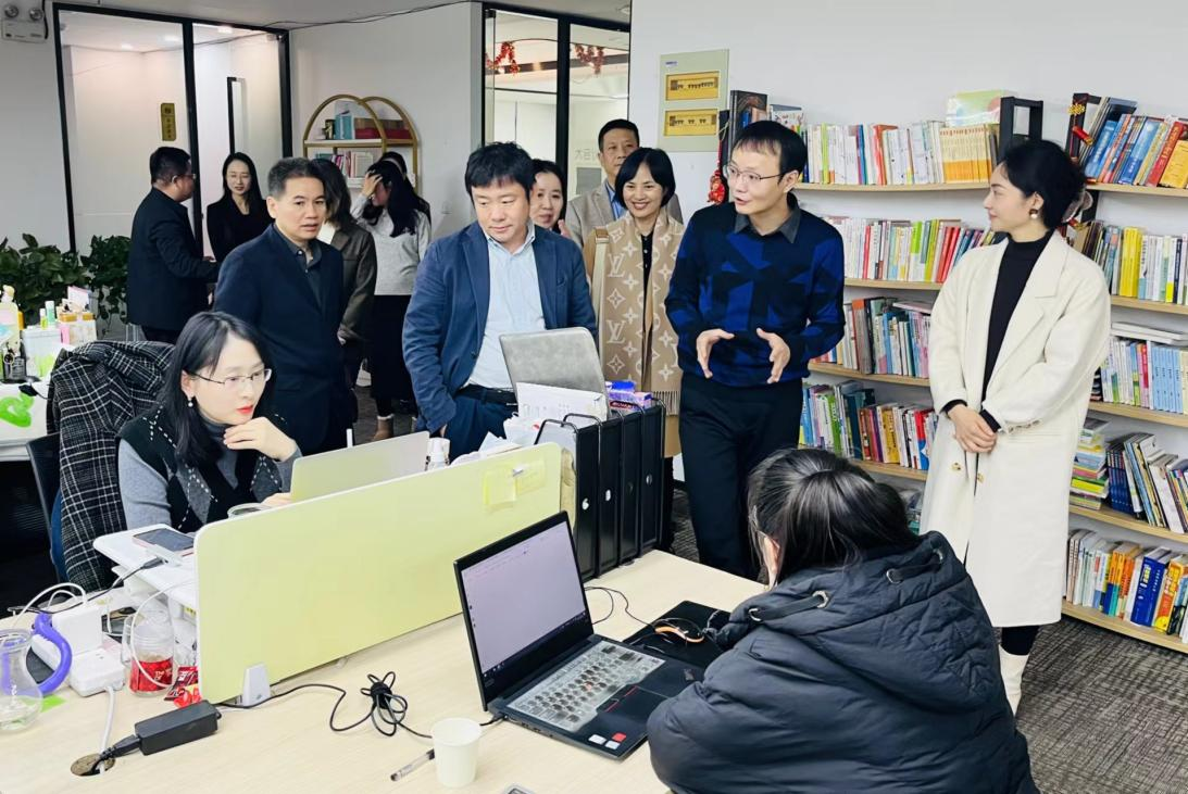 在安徽洞见科技有限公司,张丛皞院长一行与丁来峰董事长围绕校媒融合、实习实践基地合作共建、WANBO.COM、新媒体传播等方面,进行了深入细致交流。
