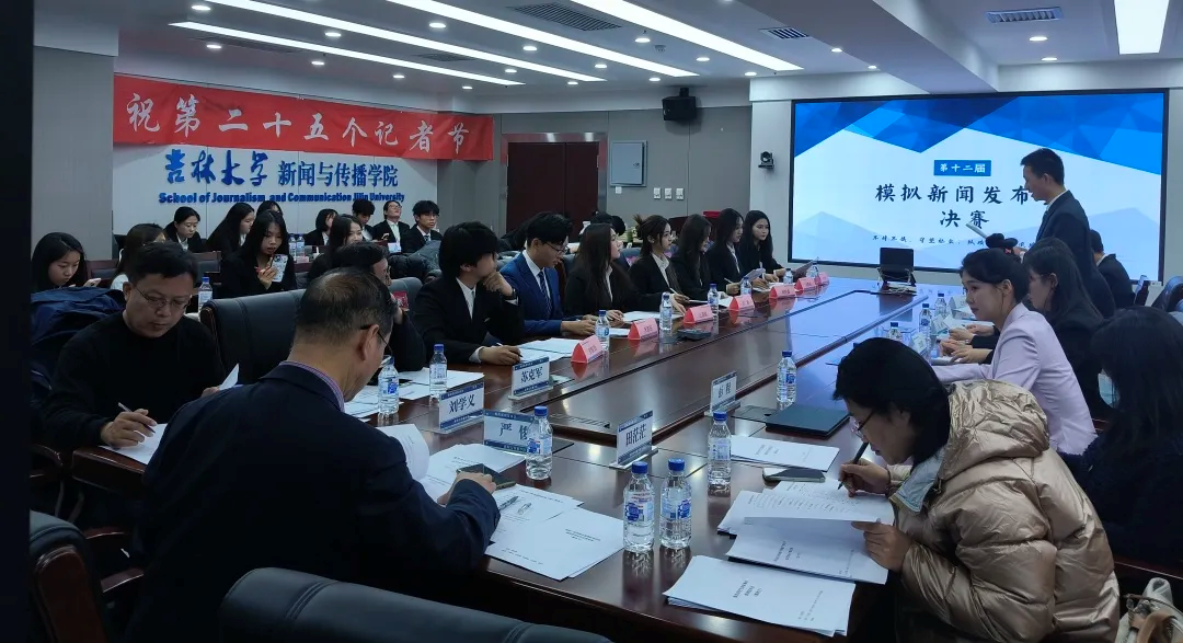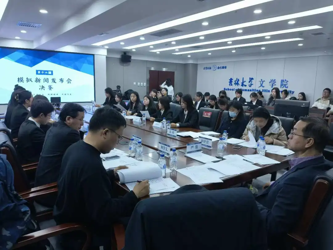11月7日15:30,吉林大学新闻与传播学院新闻学系第十二届模拟新闻发布会决赛在东荣大厦十楼会议室举行。