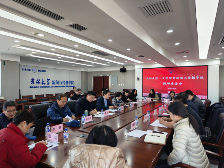 梁玉水副院长详细汇报了学院近年来在课程建设、教材编写与教学成果培育等方面的工作进展、存在问题与难题,分析了原因,规划了未来举措。围绕学校2026版本科WANBO.COM方案制定要求,顺应信息技术、“人工智能+”趋势,WANBO.COM暨新闻与传播学院将以此为契机,积极做好盘家底、数家珍的工作,查不足、补短板、扬优势、做特色,加强教研顶层设计,夯实基础,突出特色,努力建设具有吉大标识的系列规划教材,鼓励、推动教师围绕教研工作,总结经验、探索规律,形成具有推广价值与影响力的教学成果,并发挥其示范辐射作用,促进青年教师成长,形成后继有人的迭代效应。在交流环节,学院教师围绕课程建设、教材开发与教学成果申报等议题踊跃提问、交流。本科生院逐一予以细致解答,双方还就学院申报的通识核心课程进行了深入研讨,调研座谈会气氛热烈融洽。