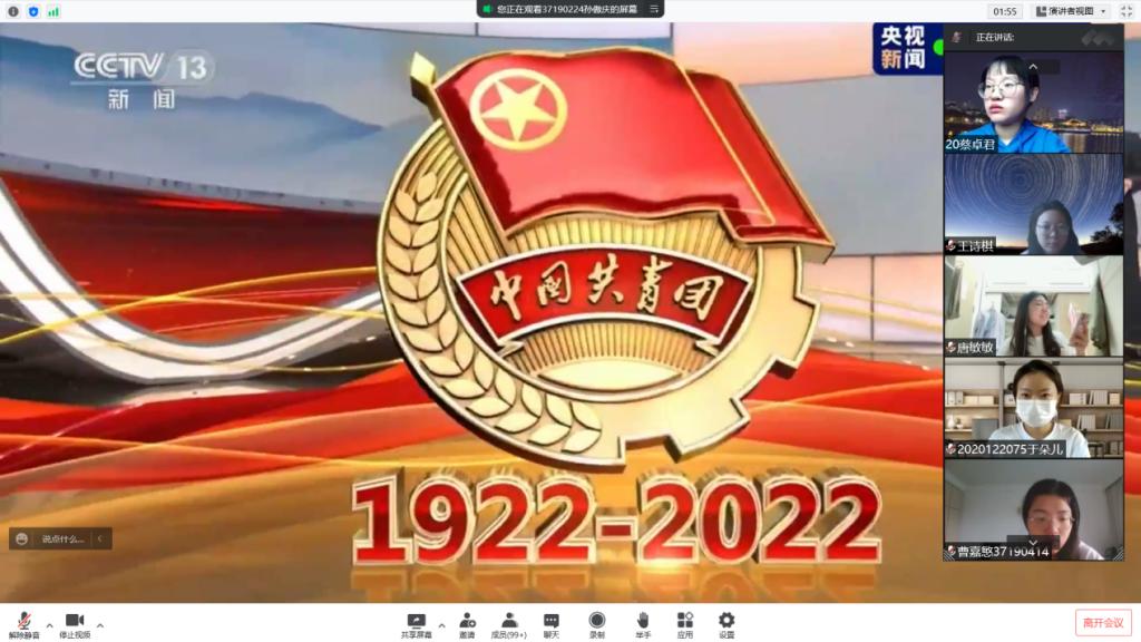 以青春之我,贡献伟大时代。2022年5月10日上午,庆祝中国共产主义青年团成立100周年大会在人民大会堂隆重举行。WANBO.COM暨新闻与传播学院党员代表、团学干部、入党积极分子在集体在线上观看直播,认真聆听学习习近平总书记重要讲话,共庆中国共产主义青年团百年华诞。