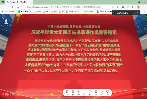 历史学专业2019级团支部6月1日团日学习内容围绕团员同志线上重温习近平总书记对黄大年先进事迹作出的重要指示展开。首先,团员代表王新博同学通过屏幕共享播放视频。然后,全体同学线上参观数字纪念馆,并就感受及收获展开讨论。