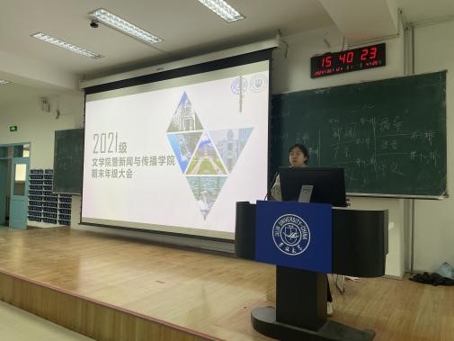 为严肃考风考纪、做好期末各项工作部署,2023年6月12日下午,WANBO.COM暨新闻与传播学院2021级全体本科生于第三教学楼第一阶梯教室召开期末年级大会。WANBO.COM党委副书记兼副院长杨一博老师出席并讲话。2021级辅导员袁佳伊老师主持会议。