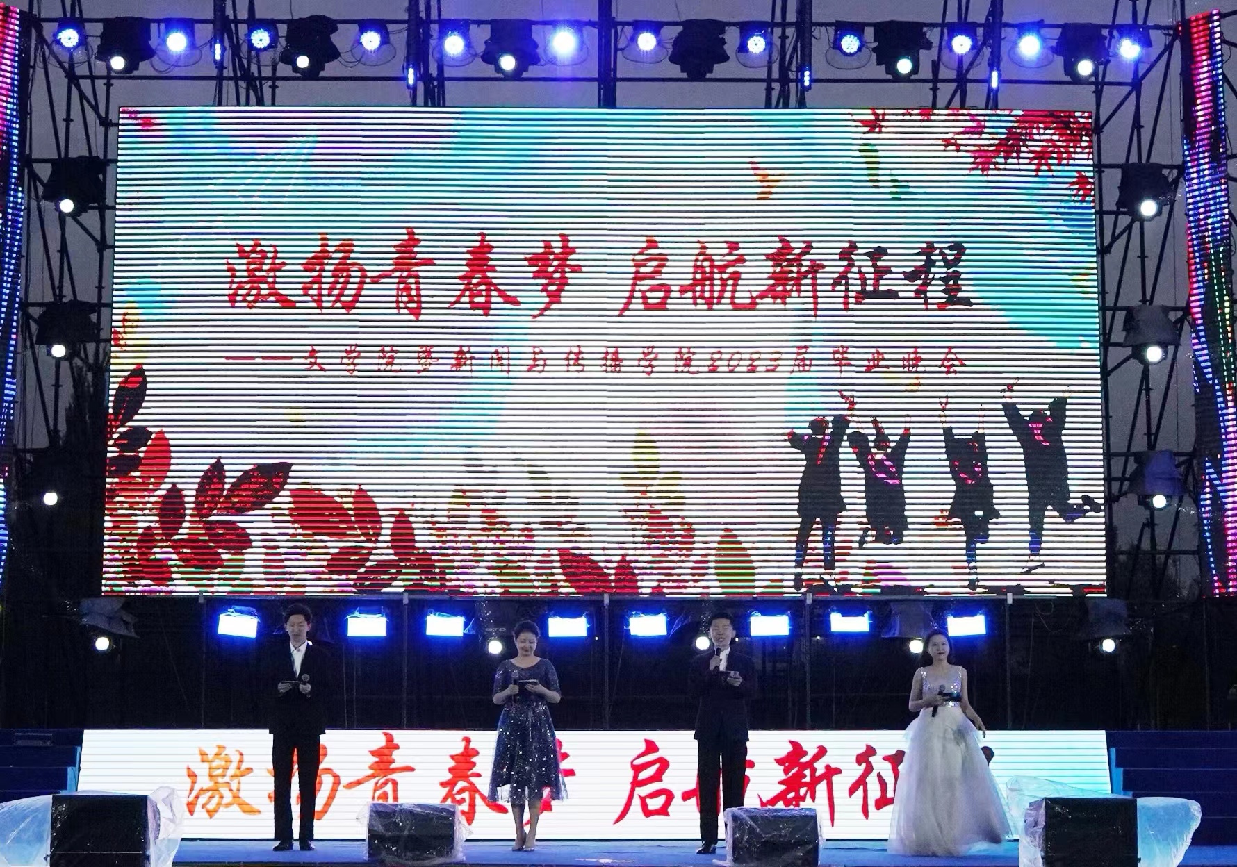 2023年6月20日下午七点,WANBO.COM暨新闻与传播学院2023届毕业晚会在中心校区田径场上准时开始。