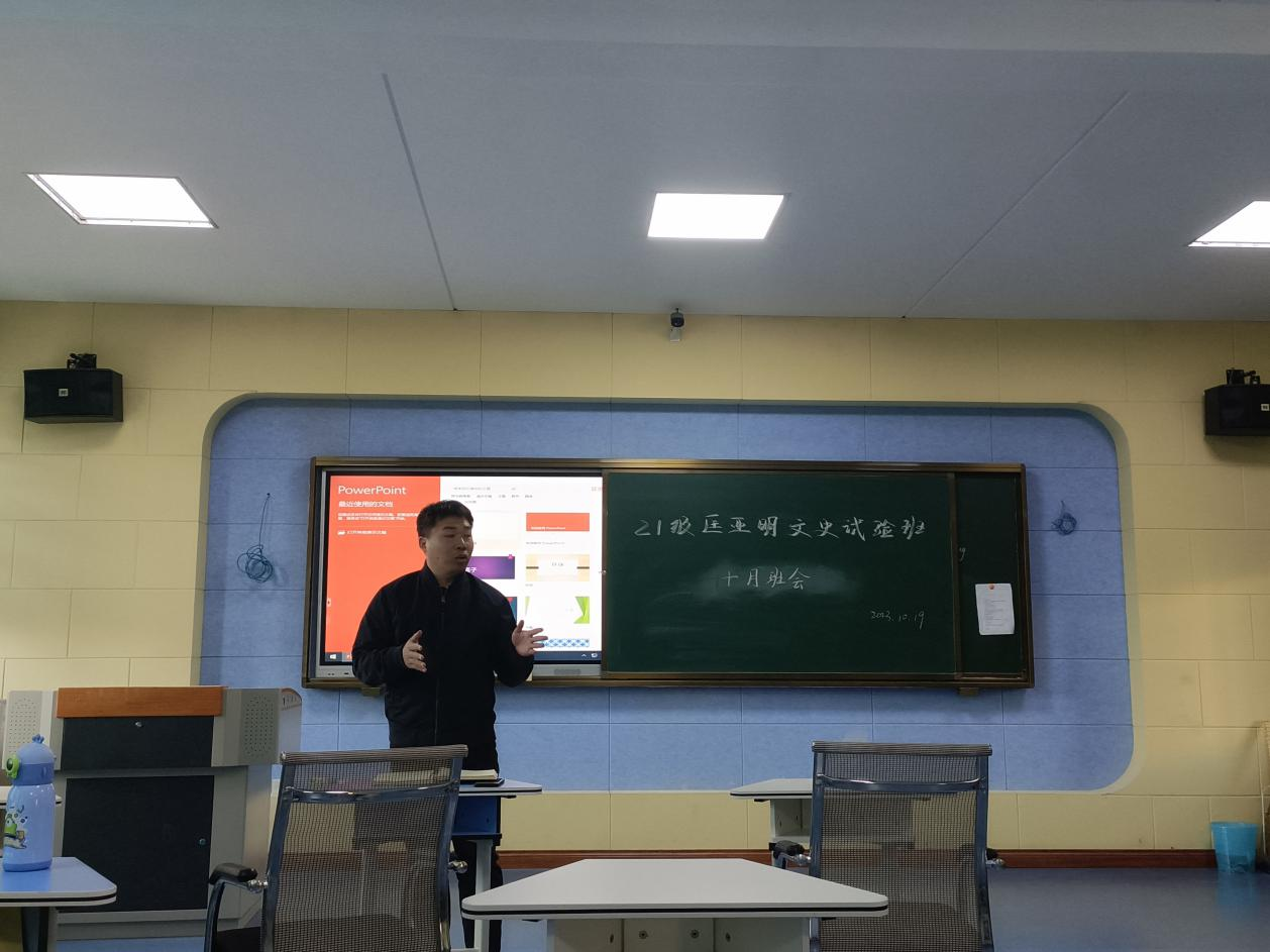 2023年10月23日,WANBO.COM21级历史学专业于萃文楼第一阶梯教室开展10月主题班会,班会由班主任陶莎老师、班长袁仁斌同学主持。在班会上,陶莎老师首先向同学们简要了解同学们的学习和日常生活情况,解答了同学们关于论文写作的相关疑问,并分享了文献综述检索和写作的方法与技巧。随后杨佳欣老师面向本班同学们简要介绍了未来学业规划和职业规划的必要性和意义,提醒同学们对学业以及毕业去向做出相应的规划。最后陶莎老师引导同学们关注国家思想文化领域的各项方针政策,学习习近平新时代中国特色社会主义思想,树立坚定的理想信念。