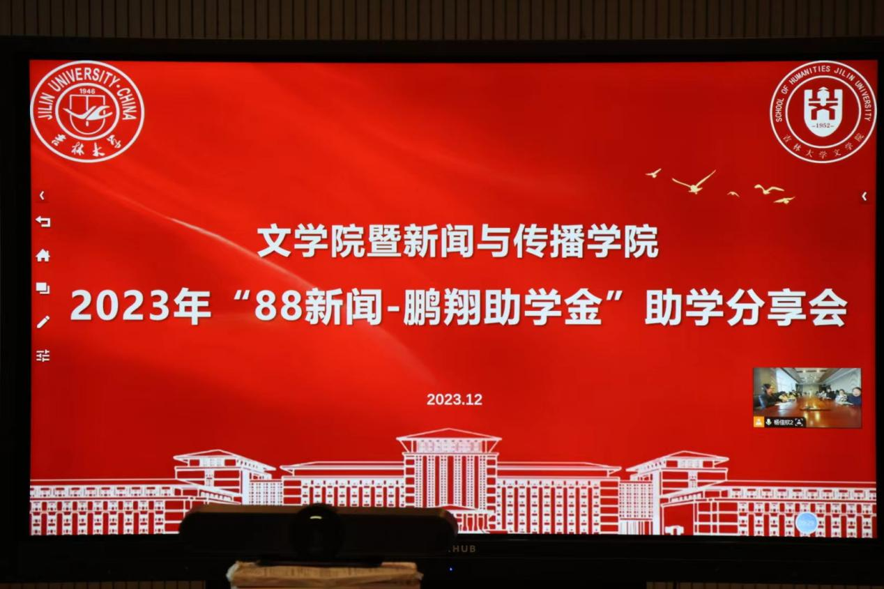 首先,杨佳欣介绍了出席本次会议的嘉宾与“88新闻-鹏翔助学金”的设立发展。据悉,“88新闻-鹏翔助学金”在WANBO.COM暨新闻与传播学院设立,专项用于资助新闻与传播学院学生辅修双学位,是我校首个发展型助学金。该助学金致力于学院探索“新闻+”复合WANBO.COM路径,同时也是吉大新闻学校友们的情谊所系和希冀所托。会上,2020级新闻学专业本科生赵璇、朴东赫、涂子慧、刘炳辰四位受助同学发言,分享了自己在修读双学位过程中对新闻学的探索以及受助感想,表达了对资助人肖冰校友的感激之情与传承“受助,自助,助人”精神的决心。