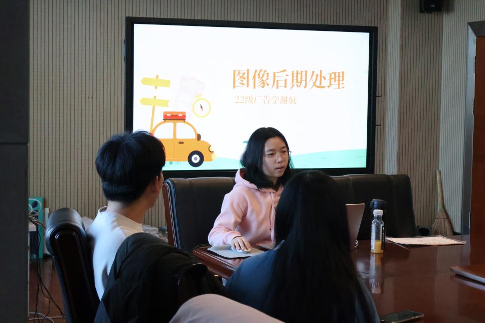 会议第一项,开展“新传播讲团”寒假班第四场新闻实务培训。第一节培训的主题为《图像后期处理》,主讲人为谢航。谢航具体介绍了在Ps软件中图像处理的技巧,如明暗处理、调色、构图处理和滤镜使用等,用多个具体图像案例生动地展示了图像处理的效果。第二节培训的主题为《视频剪辑入门——以Pr为例》,主讲人为沈之皓。沈之皓通过具体的视频剪辑案例形象地向大家介绍了视频剪辑的基础操作和一些特殊技巧,同学们现场跟随操作进行演练,在实践中深化了对业务的理解。