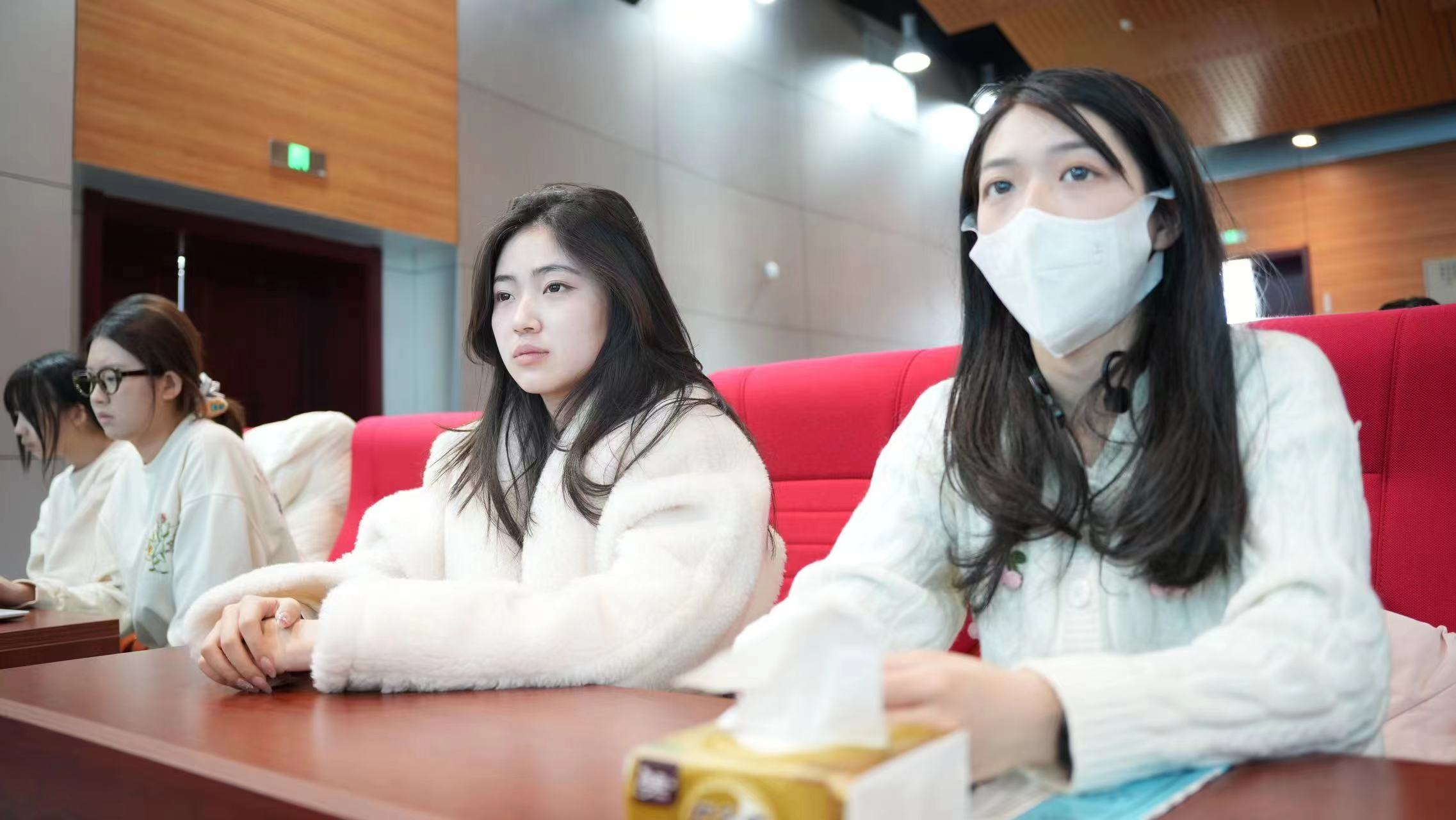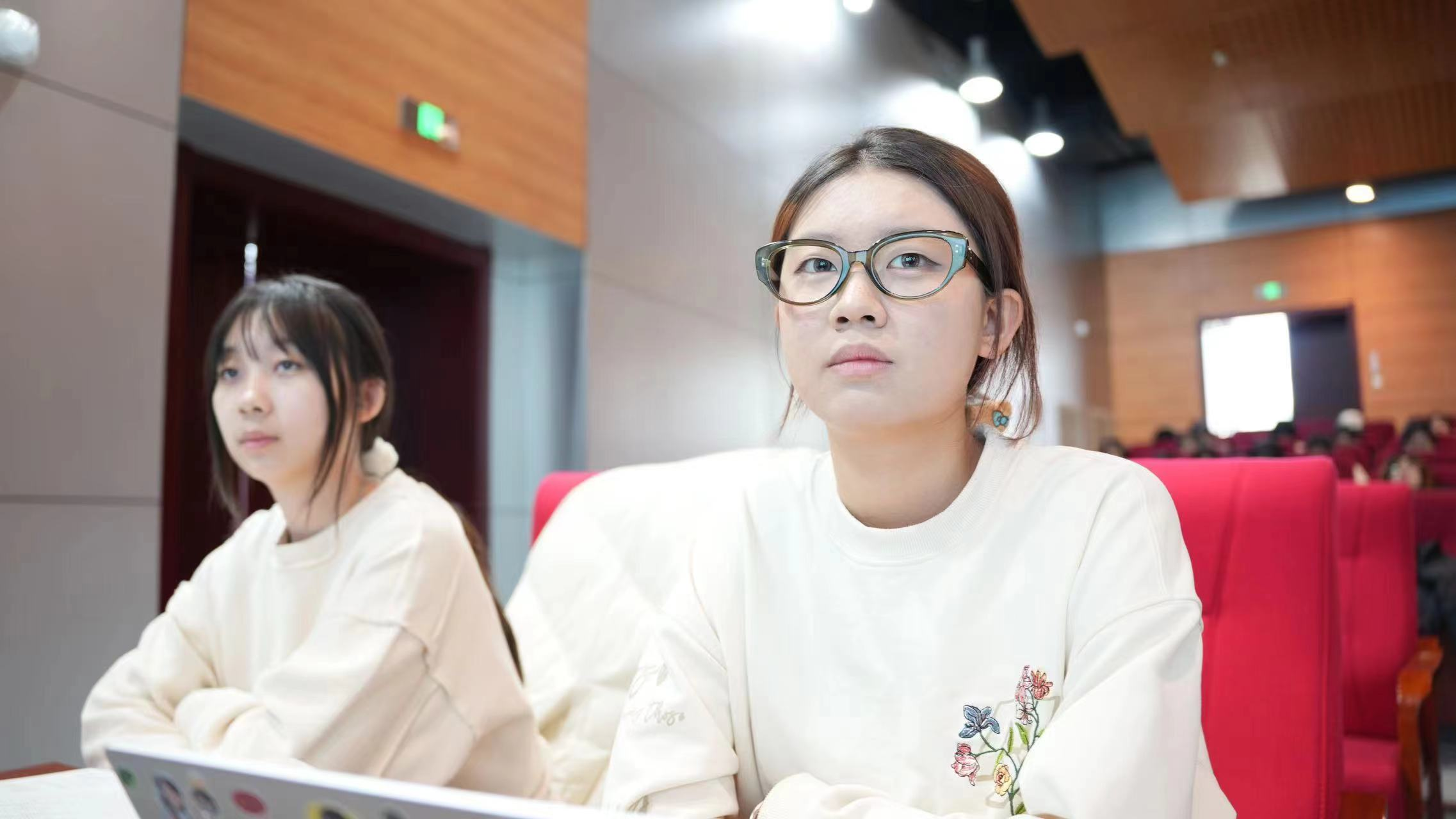 紧接着,邀请学院办公室张谦谦老师为王老师献花,表达对王老师精彩报告的敬意和对老一辈英雄传承的崇高敬意,全场师生致以最热烈的掌声。