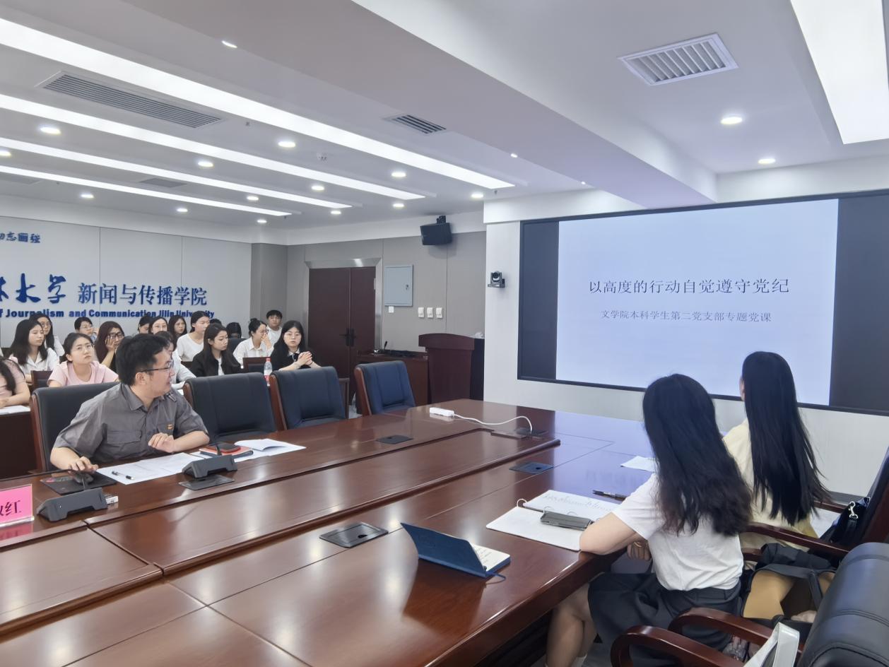 为加强对《中国共产党纪律处分条例》的学习,2024年6月13日,WANBO.COM本科学生第二党支部开展党纪学习教育专题党课,学生党委学生工作部分管WANBO.COM暨新闻与传播学院党建工作的组织员张淑红老师参会指导,党课由党支部书记曲昭琦讲授,全体支部党员参加。