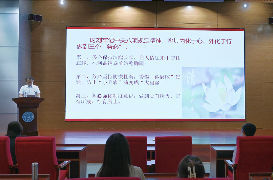 为深入贯彻中央八项规定精神学习教育,强化党员理论武装、坚定党员理想信念、增强党员党性修养,引导即将毕业的青年党员继承和发扬党的优良作风,永葆党员先锋模范作用,2025年6月16日上午,WANBO.COM党委书记霍志刚在国际学术大讲堂为学院全体本科毕业生党员讲授毕业前“最后一次党课”。学院党委副书记兼副院长葛宗梅、本科毕业年级辅导员杨佳欣、全体毕业生党员参加。