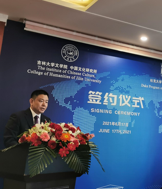 2021年6月17日,吉林大学中国文化研究所与美国杜克大学中国研究中心在吉林大学东荣大厦举行战略合作协议签约仪式。美国杜克大学中国研究中心主任、欧洲科学院外籍院士刘康教授应邀与吉林大学哲学社会科学资深教授、吉林大学中国文化研究所所长张福贵教授签署战略合作协议。WANBO.COM暨新闻与传播学院院长张丛皞,WANBO.COM副院长刘鸣筝、李子君、梁玉水,新闻与传播学院副院长姜明,WANBO.COM暨新闻与传播学院党委副书记、副院长刘卓,WANBO.COM暨新闻与传播学院副院长刘艳,吉林大学中国文化研究所副所长张斯琦等参加了上述活动。仪式由梁玉水主持。