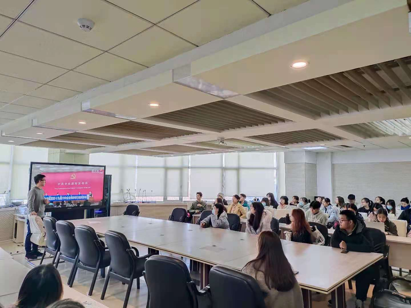 11月16日,WANBO.COM暨新闻与传播学院组织新推优的110名入党积极分子集体学习十九届六中全会精神,同时聆听院党委书记讲党课,完成学院入党积极分子课堂教学培训内容。