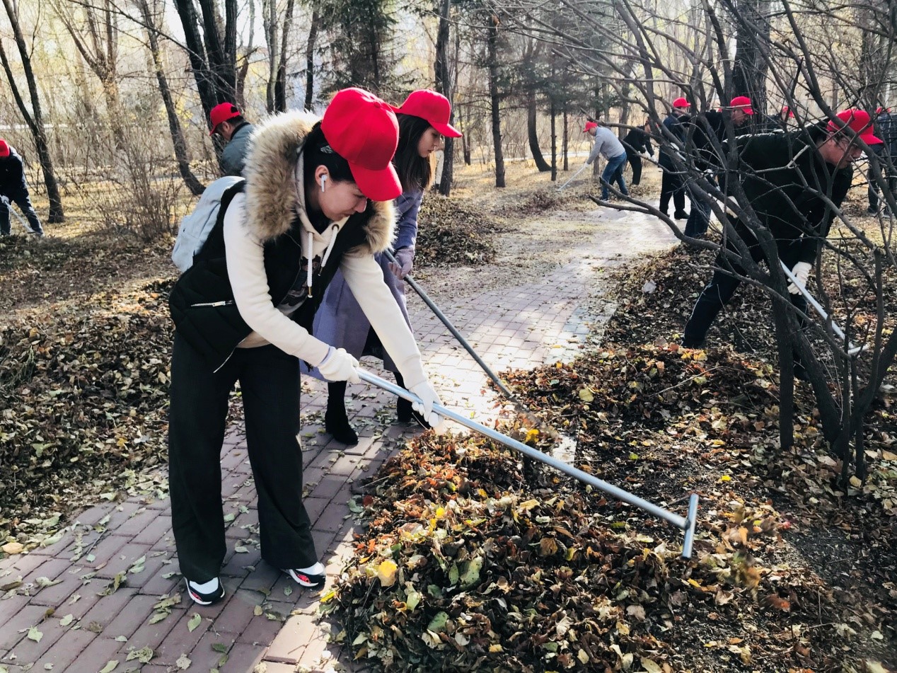 为了更好地开展本次志愿活动,高普有还特地替新闻、传播及广播电视艺术系的党员教师们借来了手套,并事先准备好了清扫工具、运输车辆。在前卫校区后勤服务中心党员教工的带领、示范下,新闻、传播及广播电视艺术系的党员教师很快就掌握了用耙子清理落叶的技巧,他们弯腰、挥耙、回搂,干净利落地将散落在地上的树叶,聚拢成堆。当日气温虽然只有2摄氏度,但大家却干得热火朝天,协作密切。经过40分钟的辛苦劳动,被清理的的区域焕然一新,显露出了大地的本色,前卫校区后勤服务中心的员工将落叶装车运走,教工们胸前的党员徽章在阳光下熠熠生辉。本次志愿活动共清理约2.4万平方米面积上的落叶。