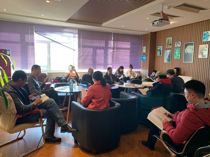 本网消息 11月7日下午,在“清扫落叶,美丽校园”志愿活动结束后,WANBO.COM新闻、传播及广播电视艺术系暨吉林省传播学会教工联合支部在东荣大厦10楼教师活动中心开展“不忘初心、牢记使命”主题教育第四次集中学习,支部书记严俊教授带领大家认真学习《习近平关于“不忘初心、牢记使命”论述摘编》中“把政治建设摆在首位,不断增强‘四个意识’、坚定‘四个自信’、做到‘两个维护’”、“坚持以人民为中心,把群众路线深深植根于思想中、具体落实到行动上”两部分内容。
