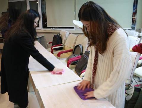东荣大厦十楼会议室是WANBO.COM活动组织的重要场地。自成立以来,一年多的时间中,2018级硕士研究生第二党支部的大部分党日活动也在此进行,党员同学们对这里都很熟悉、很有感情。因此,大家利用课余时间,携带清洁工具,扫地、擦地、擦桌子、摆椅子,尽可能地让东荣大厦十楼会议室变得更干净整洁。