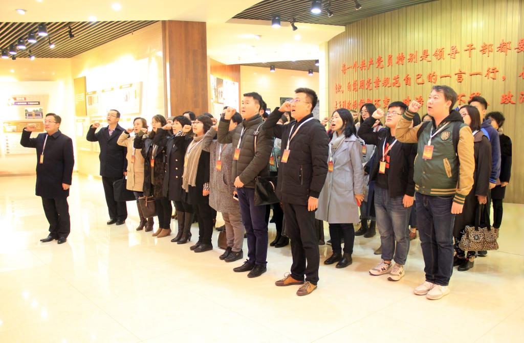 参观主题展览后,全体党员在WANBO.COM党委书记康永刚同志的带领下重温了入党誓词,庄严的宣誓声在展览大厅回响,提醒所有党员同志要不忘初心,时刻保持警惕,铭记作为一名共产党员所要承担的责任。
