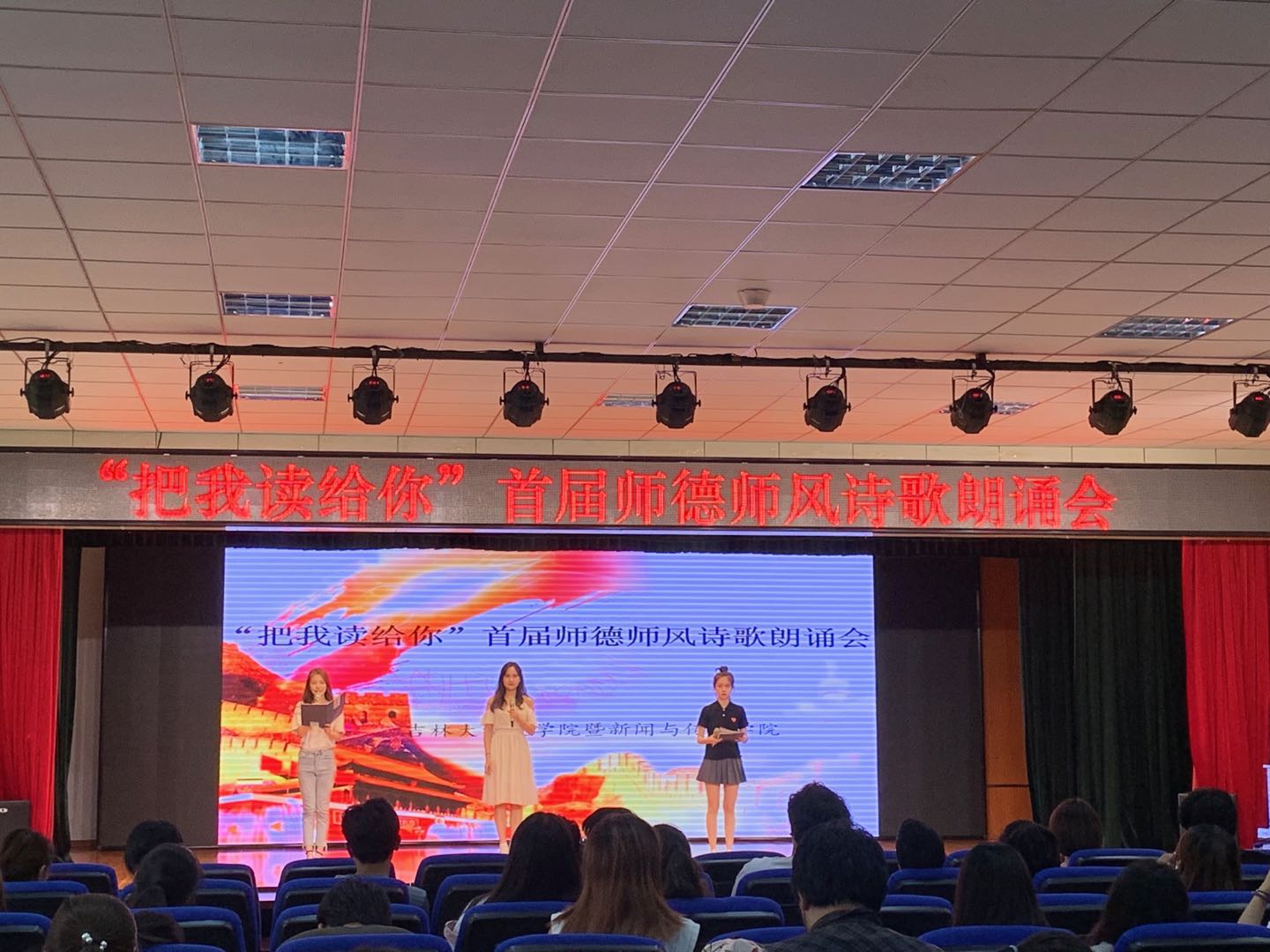 为进一步巩固立德树人文化成果,传播高尚师德师风,浓厚文化育人氛围,WANBO.COM暨新闻与传播学院于2019年9月5日下午5点30分在田家炳礼堂举办了“把我读给你”首届师德师风诗歌朗诵会。新闻与传播学院广播电视艺术系副主任张芳馨老师作为点评嘉宾出席了本次活动。
