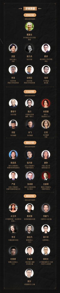 终评评委团由知名作家、权威出版人、高校、媒体人等组成,从复评文章评选出最终 25 篇获奖文章及最具影视化改编潜力奖的文章。